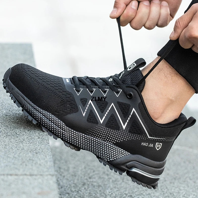 Work shoes for men. Safety, steel toe, breathable work boots with puncture protection.